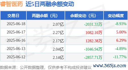 本站消息,6月18日宝聚荣配资,睿智医药(300149)融资买入5839.09万元,融资偿还7869.83万元,融资净卖出2030.74万元,融资余额2.07亿元,近20个交易日中有12个交易日出现融资净买入。