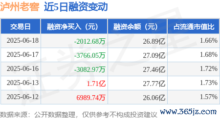 本站消息,6月18日,泸州老窖(000568)融资买入1.34亿元富隆咨询,融资偿还1.55亿元,融资净卖出2012.68万元,融资余额26.89亿元,近20个交易日中有11个交易日出现融资净买入。